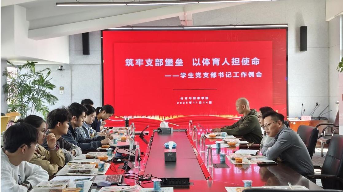 2025年11月14日中午,体育与健康学院学生党支部书记工作午餐会在学院四楼会议室举行。活动以“筑牢支部堡垒 以体育人担使命”为主题,围绕围绕加强党支部建设、规范党员发展流程、创建特色党建品牌等议题,热烈展开“头脑风暴”。院党委书记黄岚兰、副书记兼副院长李浩、专职组织员袁春与全体学生党支部书记共进午餐。
