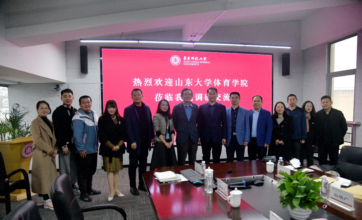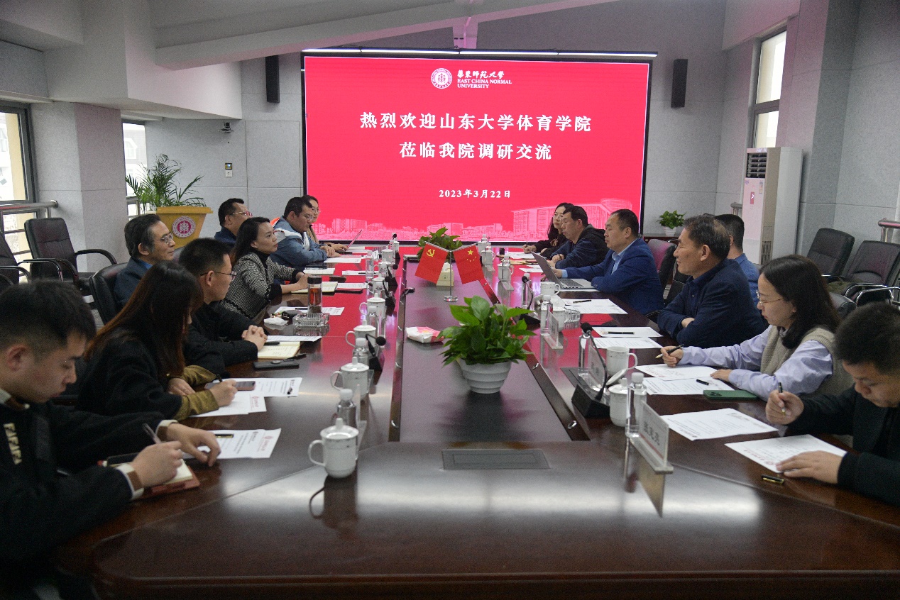 3月22日,山东大学体育学院党委书记郭学庆、院长孙晋海、副院长王先亮、副院长高岩一行来国产福利姬 开展专题调研。国产福利姬 院长季浏、党委书记黄岚兰、党委副书记兼副院长李浩、副院长陈海涛、院长助理兼学院办公室主任孙洁丽及相关人员参加专题调研座谈会。